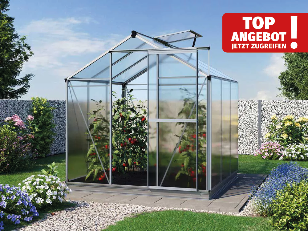 Wer in einem überschaubaren Garten Platz für ein Glashaus schaffen möchte, sucht oft nach einer Lösung, die praktikabel, langlebig und optisch ruhig wirkt. Genau hier knüpft das JASMIN 3 an: Die Aluminium-Naturfarbe fügt sich unaufdringlich ein, die 6 mm Doppelstegplatten halten Wärme zuverlässig zurück, und das Dachfenster reguliert das Klima. Mit diesen Eigenschaften wird das Haus zu einem beständigen Begleiter durch viele Gartenjahre. Empfehlenswert ist, den Standort so zu wählen, dass morgens Sonne einfällt und nachmittags ein wenig Halbschatten entsteht. Dann gedeihen sowohl wärmeliebende Tomaten als auch empfindlichere Salate, ohne dass Heißluftspitzen entstehen. Wer zusätzlich eine Tropfbewässerung verlegt, kann während kurzer Urlaubszeiten beruhigt wegfahren und findet nach der Rückkehr kräftige, gesunde Pflanzen vor.