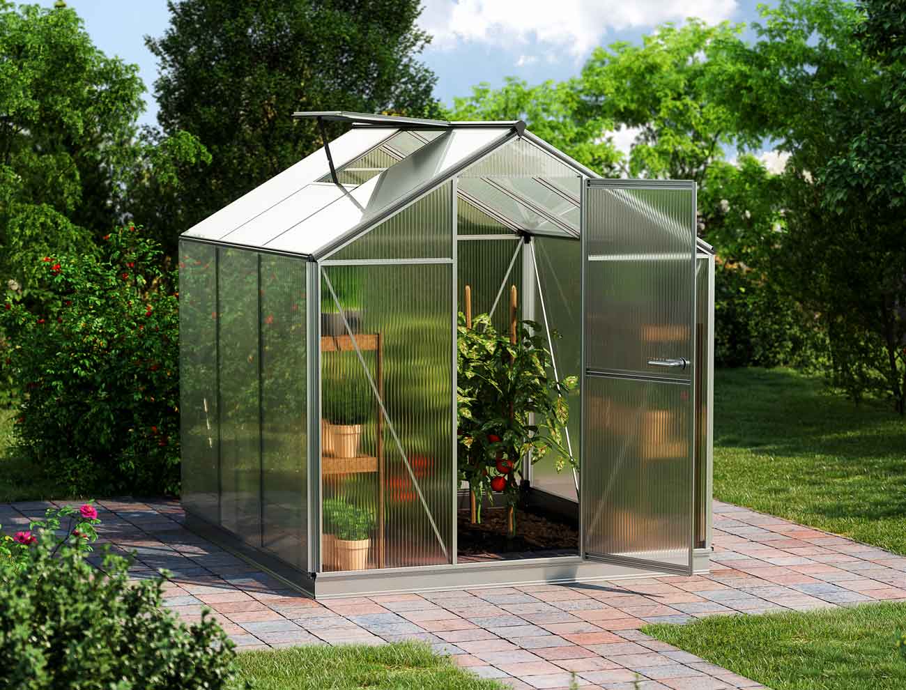 Je nach Standort und persönlichem Klimaanspruch kann zwischen 6 mm oder 8 mm starken Polycarbonat-Doppelstegplatten gewählt werden. Beide Varianten filtern UV-Strahlen, lassen diffuses Tageslicht durch und gewährleisten eine effiziente Wärmespeicherung. Die 8 mm Platten bieten durch den größeren Kammeraufbau eine gesteigerte Isolationsleistung – ein Vorteil, wenn das Gewächshaus bis in den Spätherbst oder gar wintermild genutzt wird.