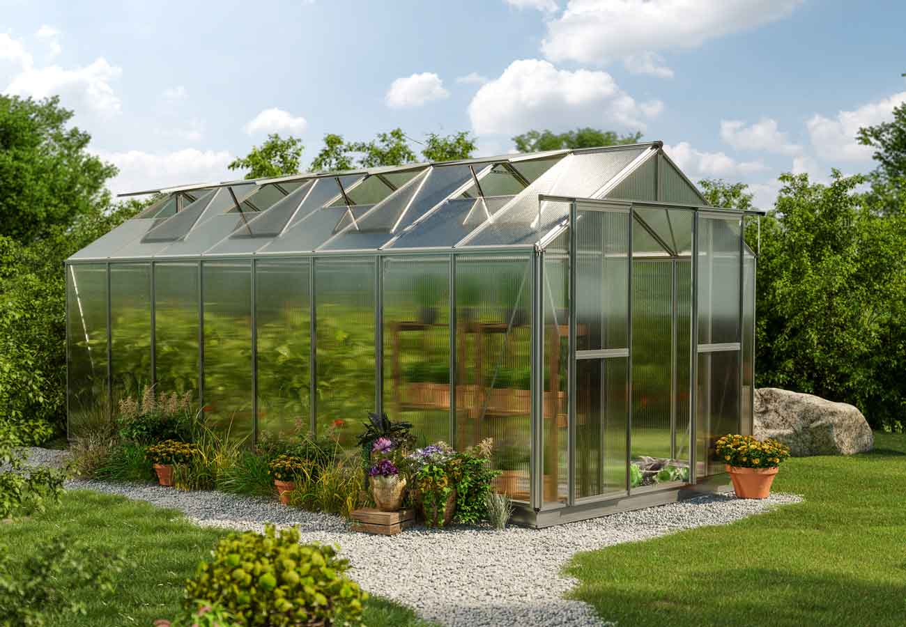 Das Gesamtpaket umfasst alle Profilteile, Hohlkammerplatten in der gewählten Stärke, Dichtungen, Montagematerial, Regenrinnen, Türeinheiten und Dachfenster. Der Versand erfolgt gut geschützt auf Palette. Bei Fragen zu Ersatzteilen oder Zubehör – etwa automatischen Fensteröffnern oder Pflanztischen – steht der technische Support des Herstellers zur Verfügung.